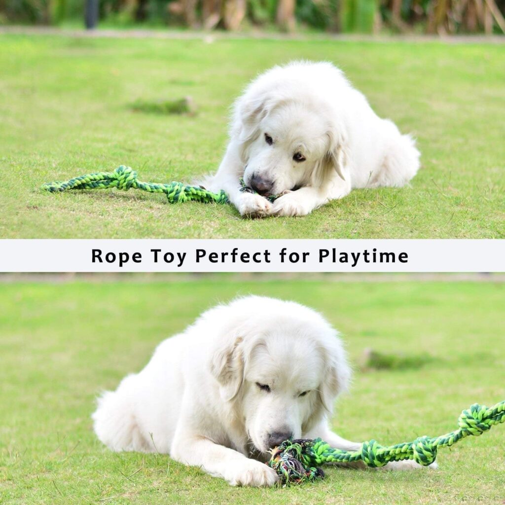 Avoid stiff ropes or tight knots if your dog is very young, elderly, or has dental issues.