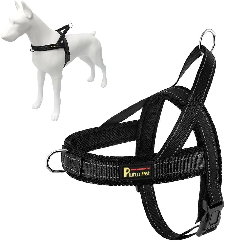 Owners looking for the best greyhound harnesses for puppy walking services or for older, sensitive pups love harnesses like the Plutus Pet No Pull Dog Harness, which combines comfort, escape-proof design, and an adjustable fit.